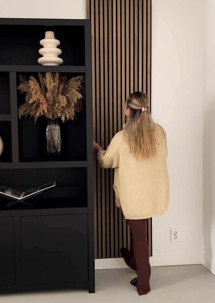 El soporte para TV de WoodUpp está diseñado específicamente para los Akupanel. Su diseño ultrafino de 10 mm se ajusta más a la pared que otros soportes y no necesita perforaciones, protegiendo así tus Akupanel y manteniendo tu hogar limpio y elegante.